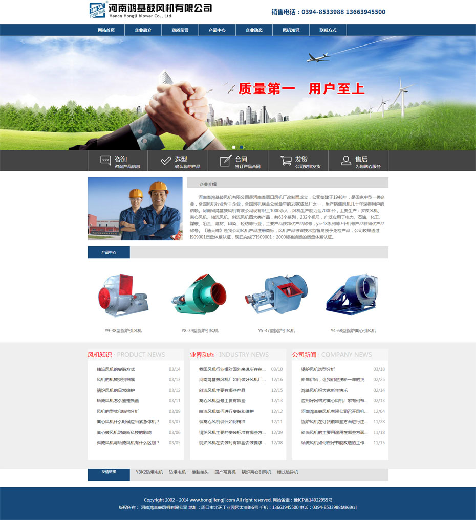 案例介紹:河南省鴻基鼓風(fēng)機(jī)有限公司是河南省周口風(fēng)機(jī)廠改制而成立,公司始建于1948年,是國家中型一類企業(yè),全國風(fēng)機(jī)行業(yè)骨干企業(yè),全國風(fēng)機(jī)聯(lián)合公司最早的28家成員廠之一,生產(chǎn)銷售風(fēng)機(jī)幾十年深得用戶的信賴。河南省鴻基鼓風(fēng)機(jī)有限公司現(xiàn)有職工1000余人,風(fēng)機(jī)生產(chǎn)能力達(dá)7000臺,主要生產(chǎn):羅茨風(fēng)機(jī)、離心風(fēng)機(jī)、軸流風(fēng)機(jī)、斜流風(fēng)機(jī)四大類產(chǎn)品,共63個系列,232個機(jī)號,廣泛應(yīng)用于電力、石油、化工、煤碳、冶金、建材、印染、輕紡等行業(yè)