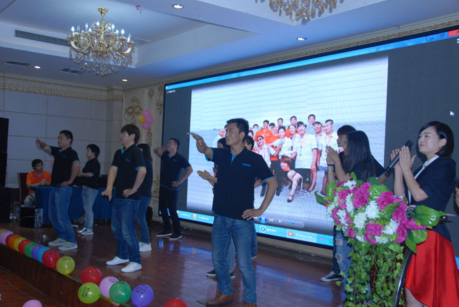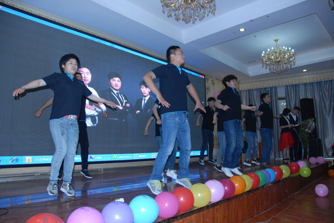 舞蹈結束伙伴們齊聲高喊:58同城與周口商家,同心同行,成城共贏!