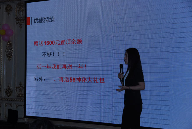 商業(yè)會議離不開會銷,這個大家都懂的,不過今天的價格真的很優(yōu)惠啊,看中原傳媒的美女講師在分享58同城產品